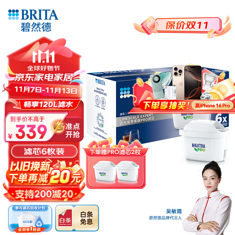碧然德(BRITA)家用净水壶 滤水壶滤芯 MAXTRA Pro WLE 去水垢专家版PRO滤芯6只装价格:389.00元!