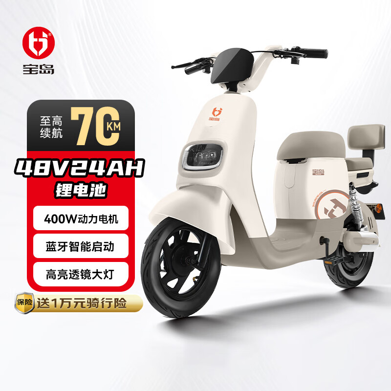 宝岛N18新国标电动车48V24Ah锂电池代步助力长续航自行车奶油白价格:2099.00元!
