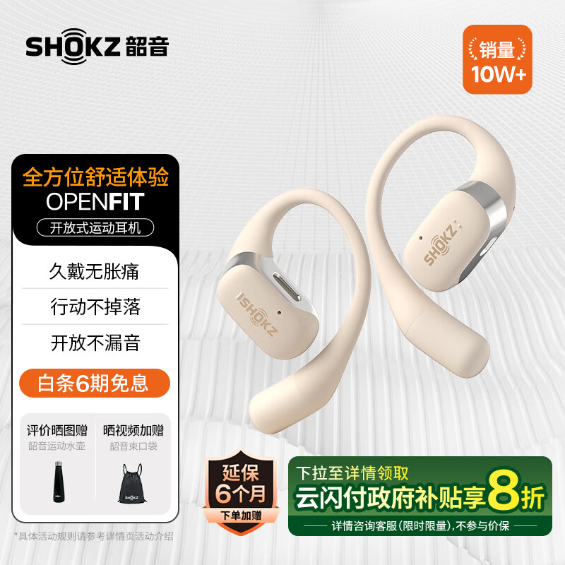 韶音(SHOKZ)【政府补贴再降20%】OpenFit T910开放式耳机挂耳式蓝牙耳机非骨传导舒适佩戴 暖日白价格:1298.00元!