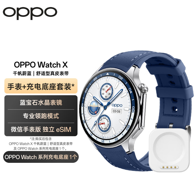 OPPO Watch X 千帆蔚蓝 全智能手表 运动健康手表 男女eSIM电话手表+充电底座套装价格:2558.00元!