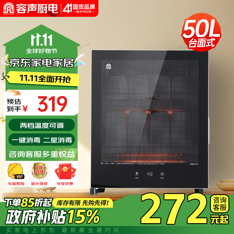 容声(RONGSHENG)消毒柜家用 小型 消毒碗柜 高温立式 迷你单门台式碗柜 餐具茶杯碗筷厨房消毒柜50-RQ230P价格:319.00元!