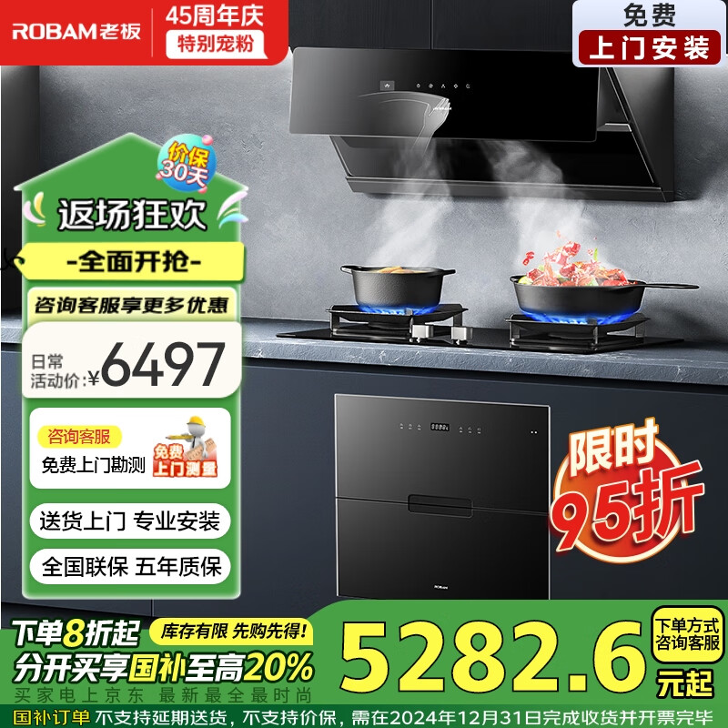 老板(Robam)抽油烟机探索家A8CS智能变频聪明25m3/min灶具消毒柜三件套29A8CS+57B6D+XB710A(天然气)价格:6497.00元!