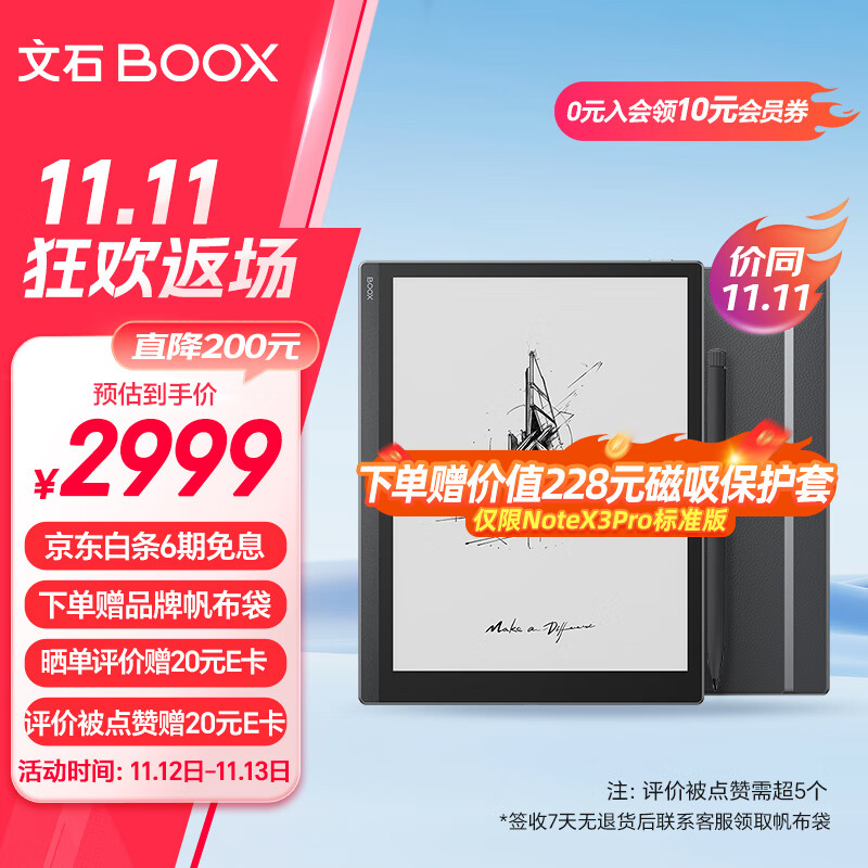 BOOX文石NoteX3 Pro 高性能读写本 10.3英寸墨水屏电子书阅读器 智能办公本 电纸书电子纸 新品发布价格:2999.00元!