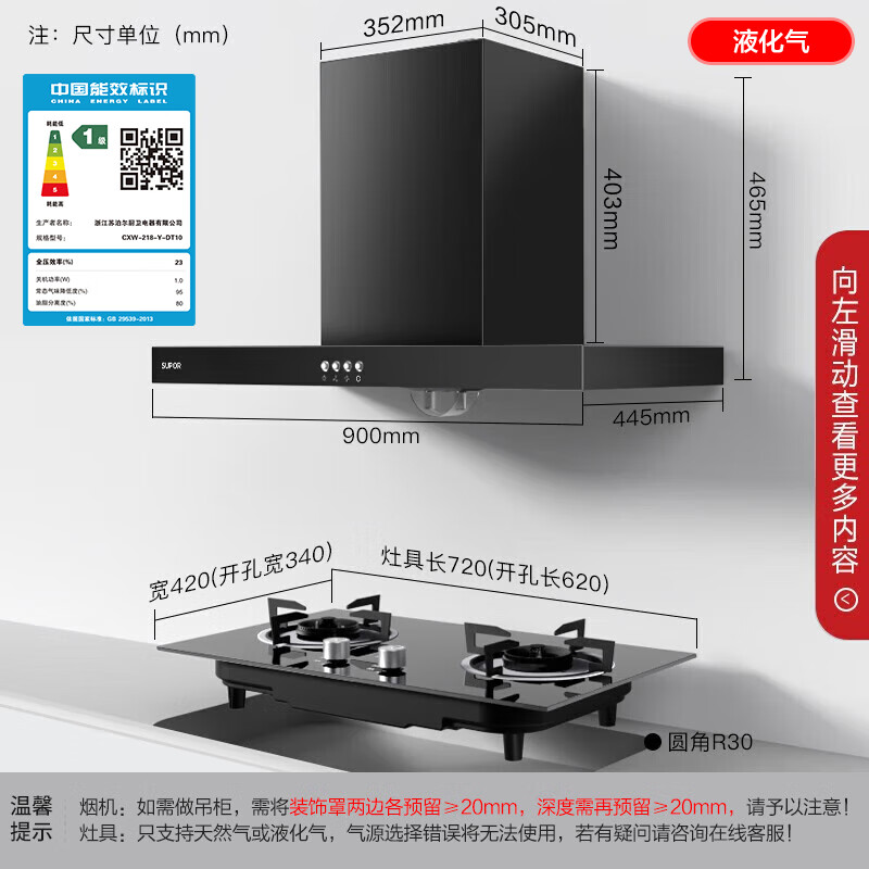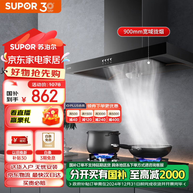 苏泊尔(SUPOR)排油烟机 宽域拢烟大吸力油烟机 家用易清洁欧式顶吸抽油烟机 吸油烟机燃气灶套装DT10+DB19液化气价格:1078.00元!
