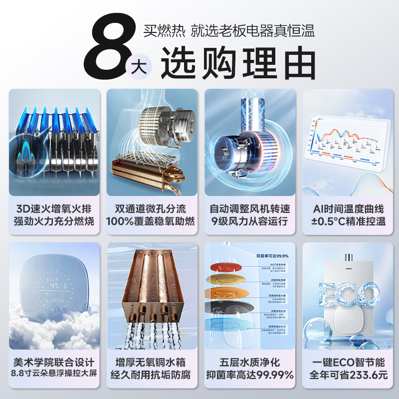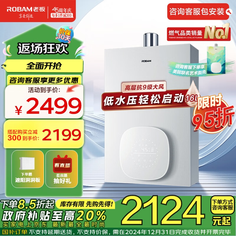 老板(Robam)国补换新立省15%】小云朵16升燃气热水器天然气匀氧稳燃智能恒温降噪抗风防冻家用强排式HT322A-16价格:2499.00元!