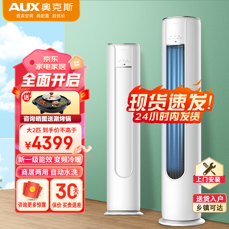 奥克斯(AUX)空调柜机 2匹立式 一级能效 大出风口家用立式空调冷暖自清洁KFR-51LW/BPR3ZAQK(B1)[家电]价格:4399.00元!