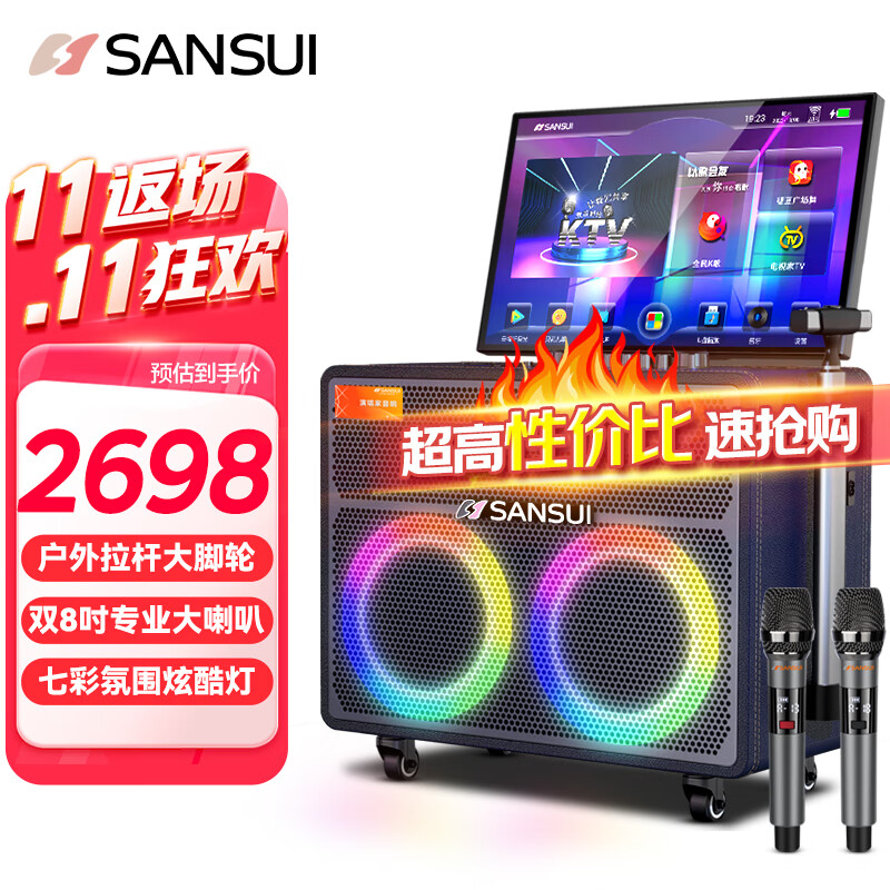 山水(SANSUI)户外ktv音响一体机 家庭K歌专用音箱套装 智能音响 卡拉OK广场舞 拉杆大功率点歌机带显示屏MD289价格:3198.00元!