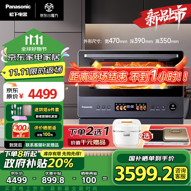 松下(Panasonic)【政府补贴】微蒸烤炸炖一体机 28升变频微波炉 烤箱 空气炸 蒸箱 万食炉上烤下蒸NN-DS59QM价格:4499.00元!
