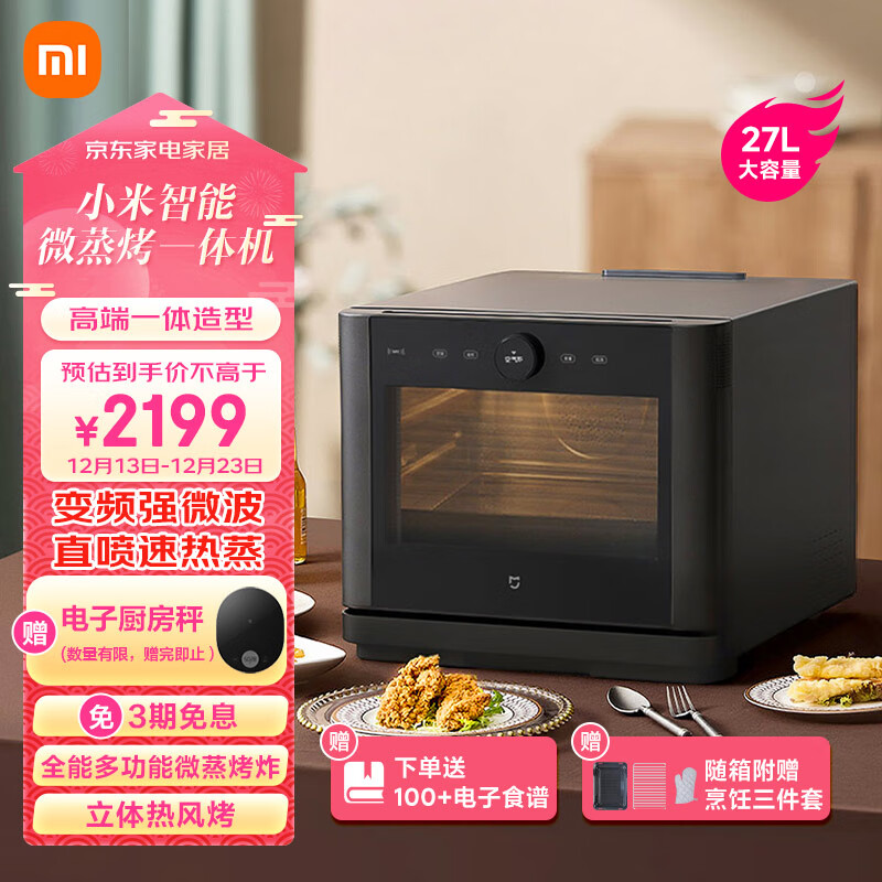 米家小米智能微蒸烤一体机家用变频水波炉微波炉蒸烤箱空气炸四合一27L大容量价格:2199.00元!