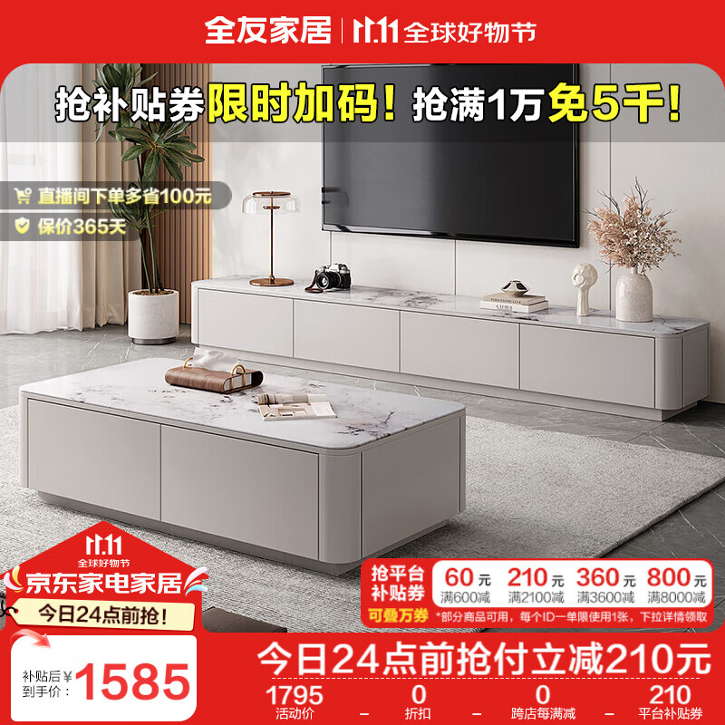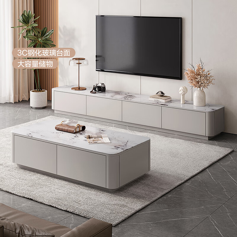 全友家居 现代简约钢化玻璃茶几电视柜组合套装客厅收纳储物柜DW1208价格:1795.00元!