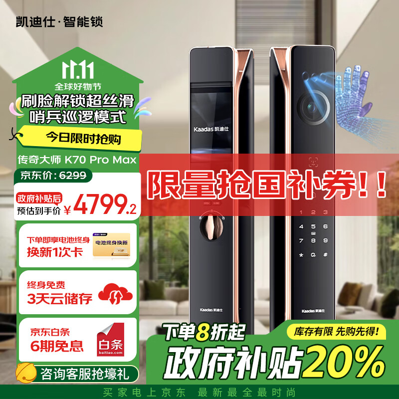 凯迪仕(kaadas)智能门锁掌静脉 猫眼智能锁 传奇大师K70 Pro Max价格:5999.00元!