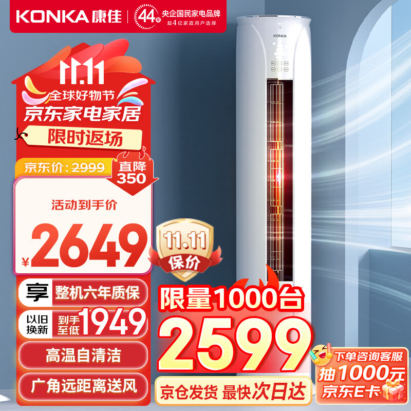 康佳(KONKA)2匹 新能效 第四代自清洁 一键节能 变频客厅空调 以旧换新 立式圆柱柜机 KFR-51LW/YC3价格:2599.00元!