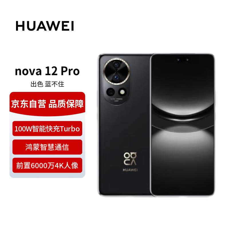 华为 nova 12 Pro 前置6000万双摄 512GB 曜金黑鸿蒙智慧通信智能手机【赠话费券】价格:3499.00元!
