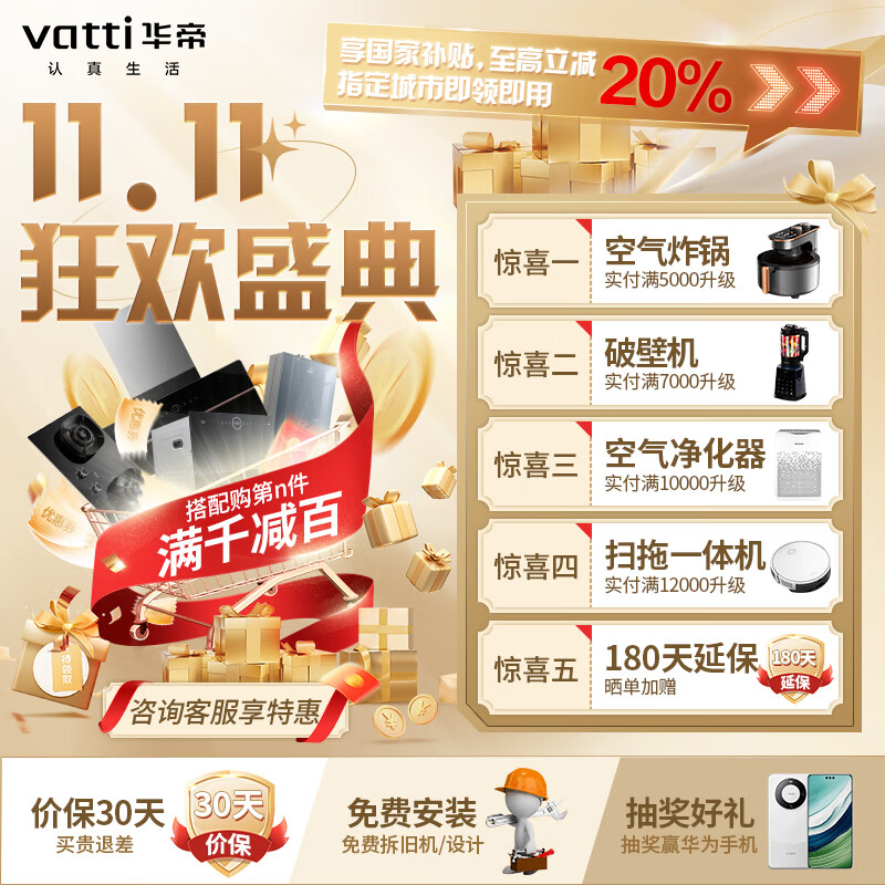 华帝(VATTI) S7 家电政府补贴 华帝官方创世·变频三腔 欧式顶吸抽油烟机家用 24立方大吸力油烟机 挥手控制 i11207 单烟机价格:1799.10元!