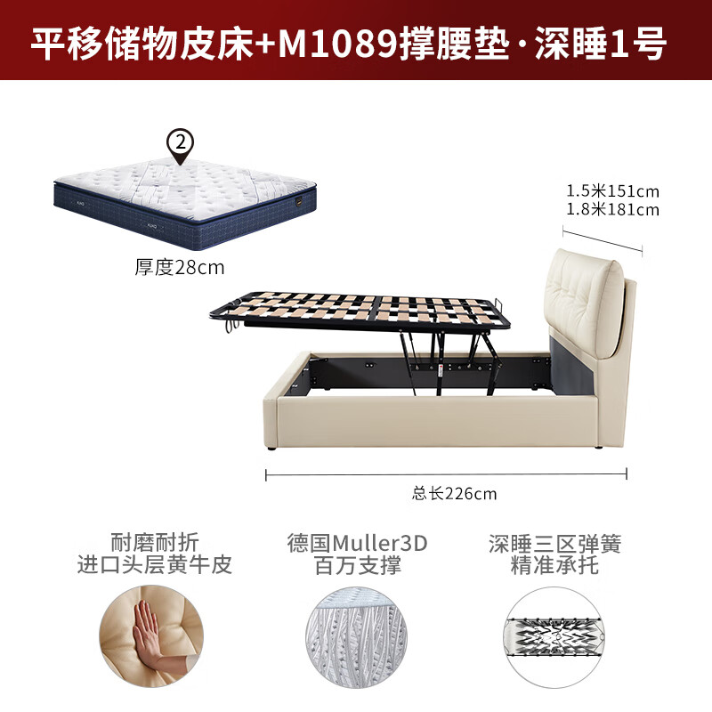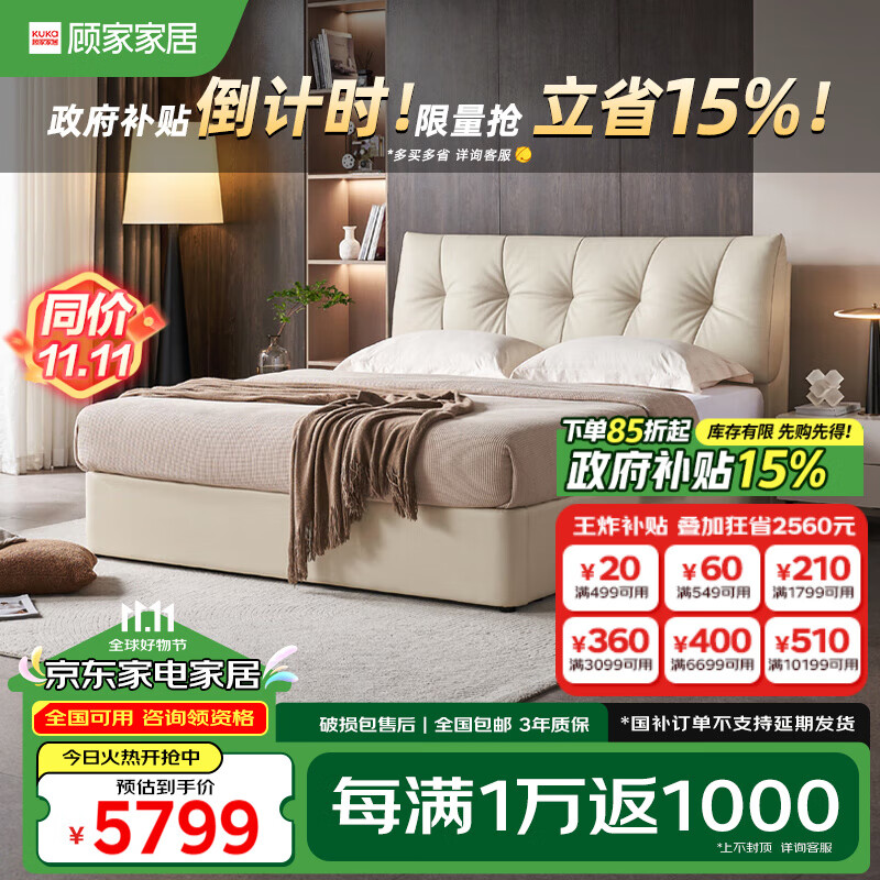 顾家家居(KUKA)储物床皮床双人床卧室大床DS8173B【月暮白】+撑腰垫·深睡1号1.8m价格:5799.00元!
