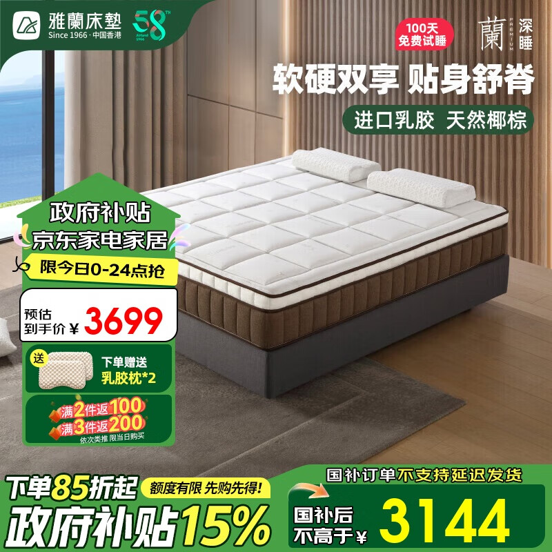 1、这款雅兰床垫做工精细,支撑力好,躺着有舒服感,希望质量能让人满意。