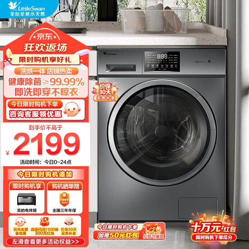 小天鹅(LittleSwan)滚筒洗衣机洗烘一体 全自动家用变频10公斤大容量带烘干超薄机身除菌洗 家电补贴国补 以旧换新 10公斤洗烘一体价格:2199.00元!