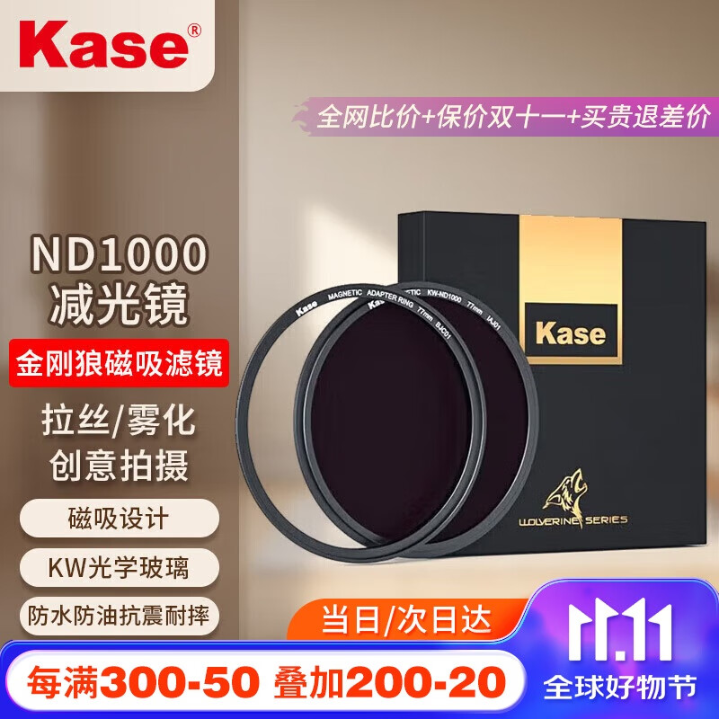 卡色(Kase)金刚狼磁吸滤镜套装 KW保护镜 ND减光镜 磁吸ND1000减光镜+接圈 82mm价格:548.00元!
