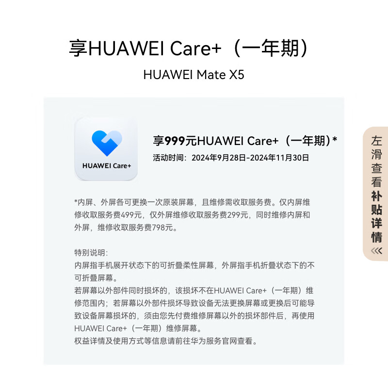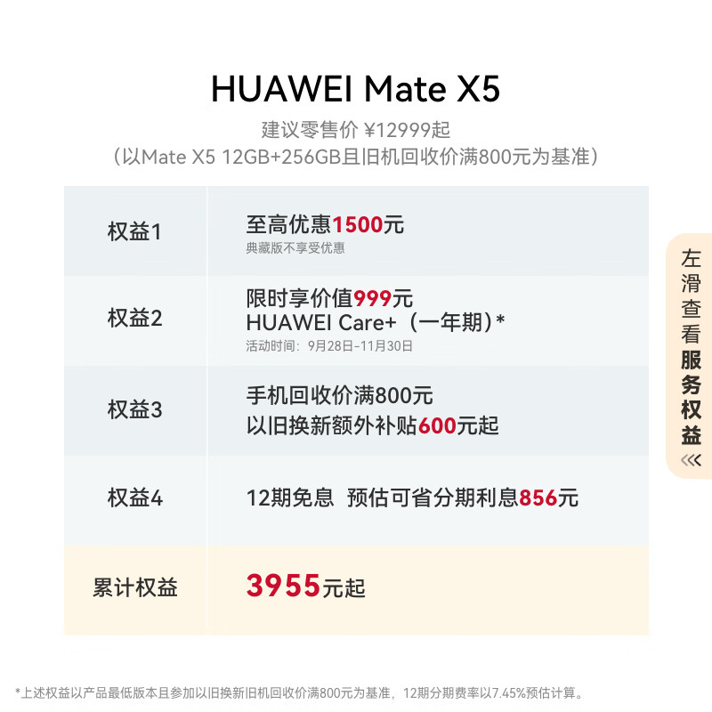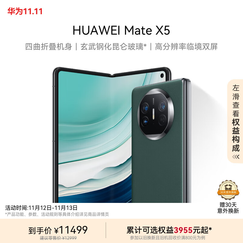 华为(HUAWEI) Mate X5 折叠屏手机 12GB+256GB 青山黛价格:11499.00元!