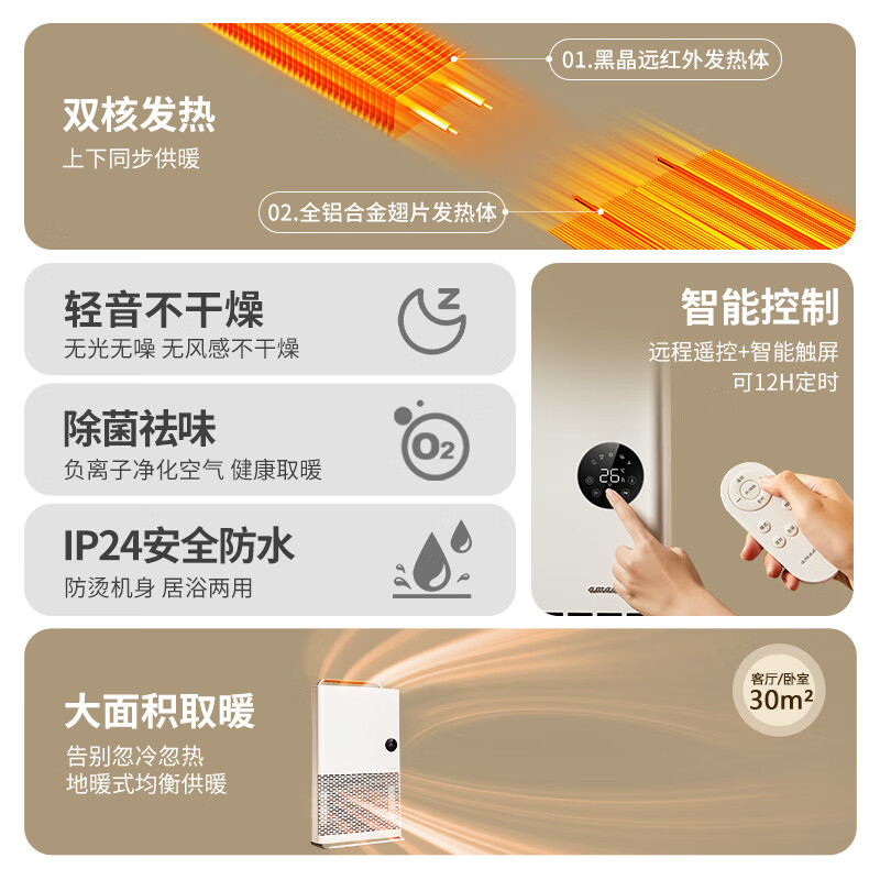 4、去年买了这个品牌非常好用,在暖气来之前给老人买了这款立式的。一点不占地,升温快,样子美观,无噪音。