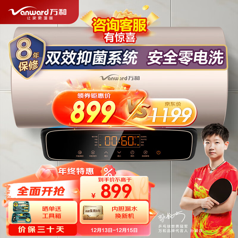万和(Vanward)60升电热水器一级能效七倍增容智能断电双管速热高温杀菌wifi智能E60-Q7WW10-20价格:1199.00元!