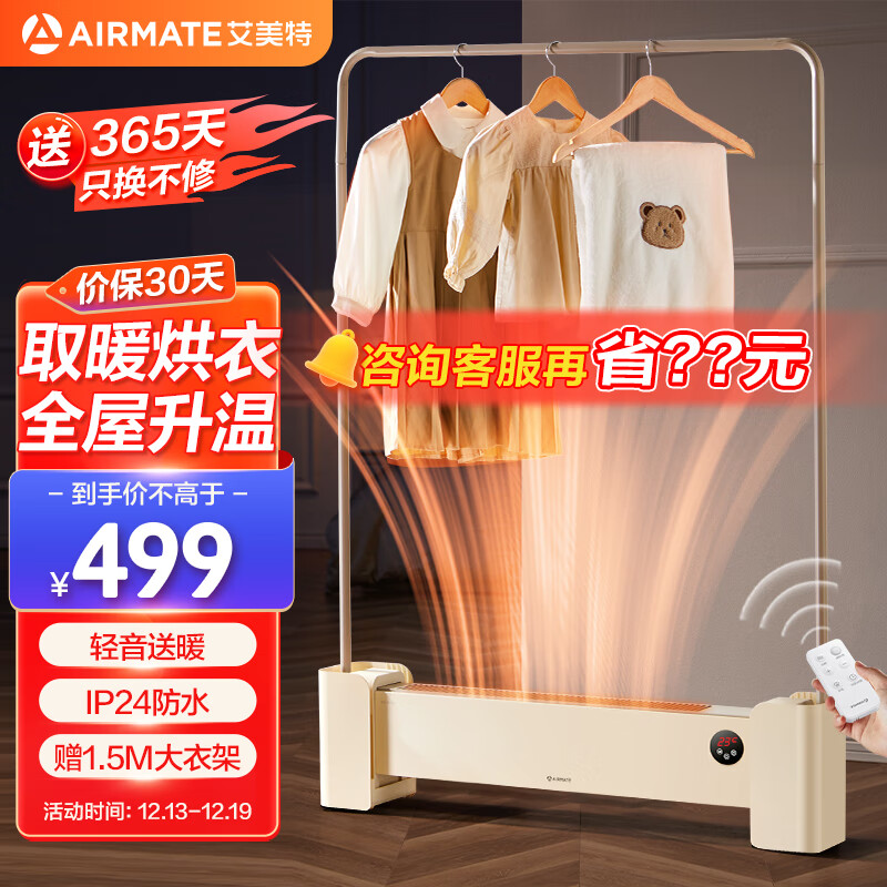 艾美特(AIRMATE)烘衣架踢脚线/取暖器/电暖器/电暖气片/暖风机/移动地暖 家用干衣架防水节能遥控踢脚线 HD20-R51价格:599.00元!