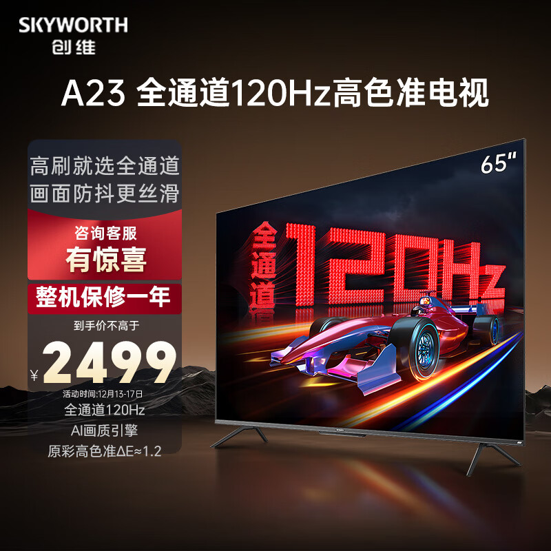 创维电视65A23 65英寸电视机全通道120Hz 2+32G4K超高清护眼声控屏智能液晶价格:2499.00元!