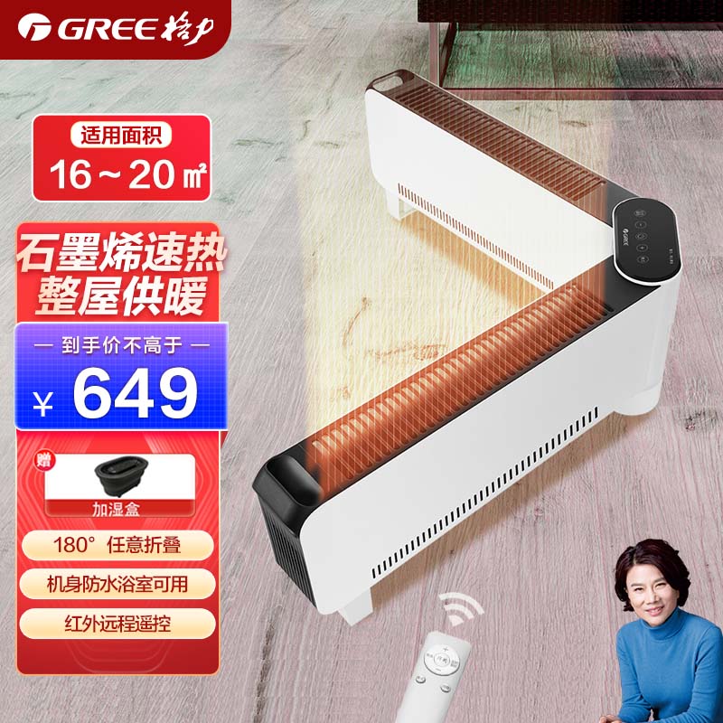 格力(GREE)取暖器家用可折叠防水踢脚线取暖器遥控移动加湿移动地暖石墨烯浴室取暖电器 NJE-J6020Ba价格:709.00元!