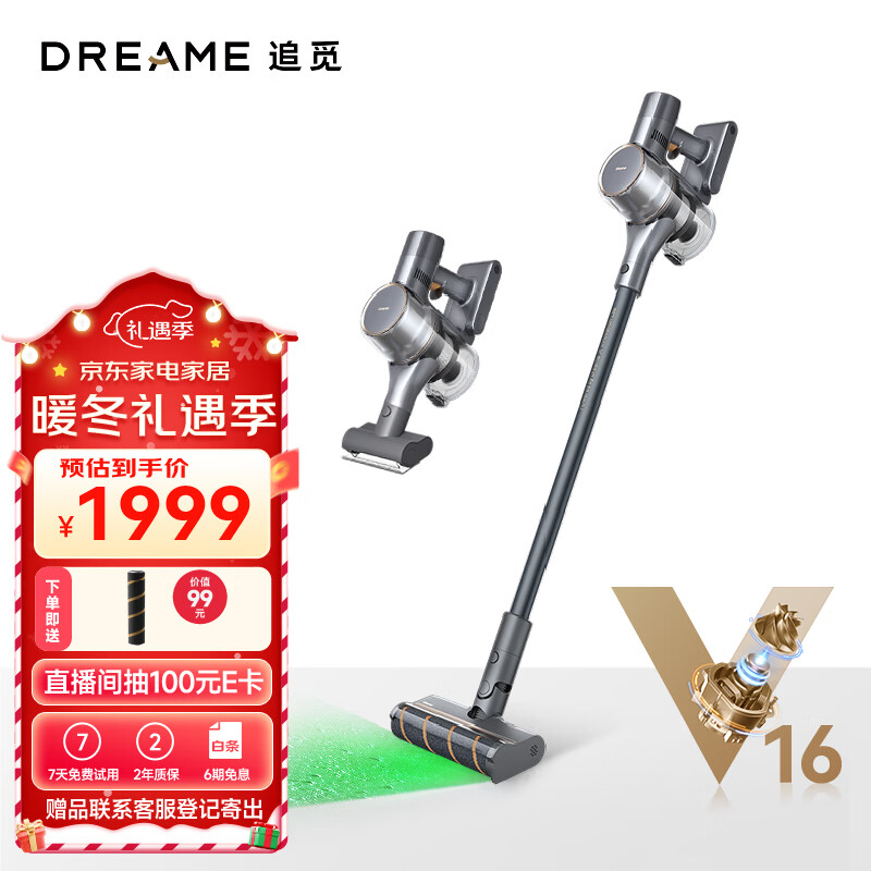 追觅吸尘器V16 Beta 家用无线手持 210AW大吸力 85分钟长续航 绿光显尘 宠物家庭适用价格:1999.00元!