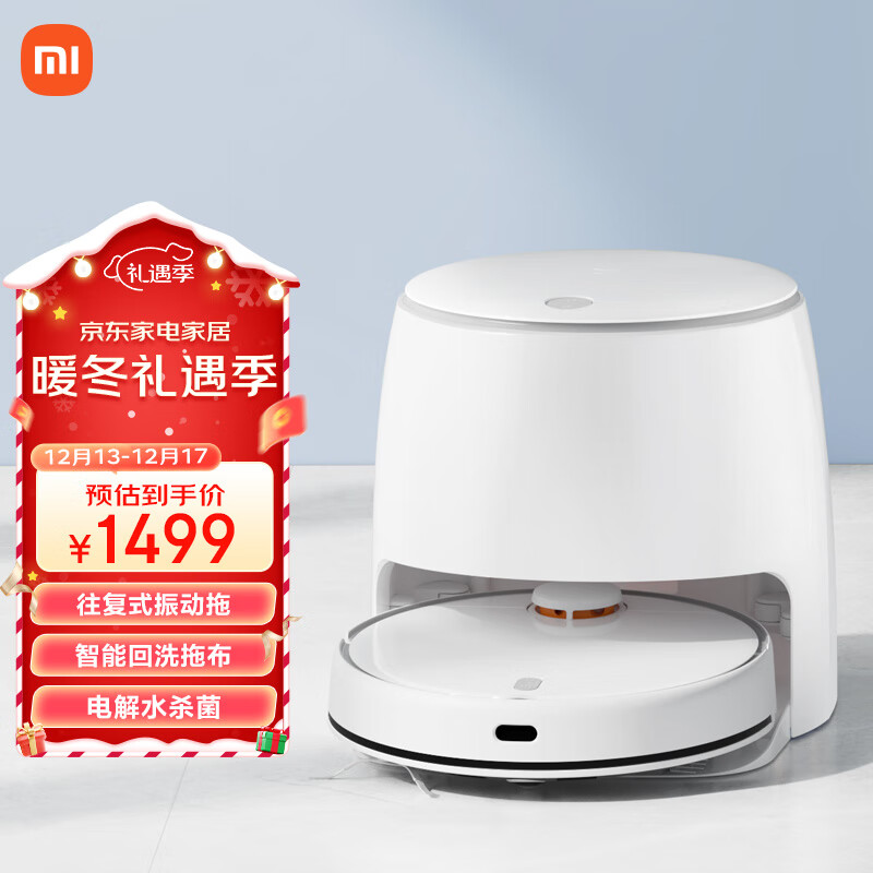 米家小米扫地机器人扫拖一体 扫洗拖一体机擦地机拖地机器人 智能自动扫地拖地 拖布自清洗 电解水杀菌价格:1499.00元!