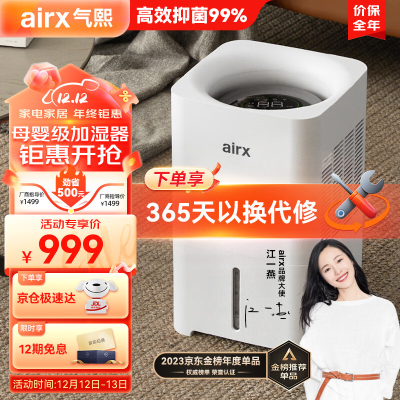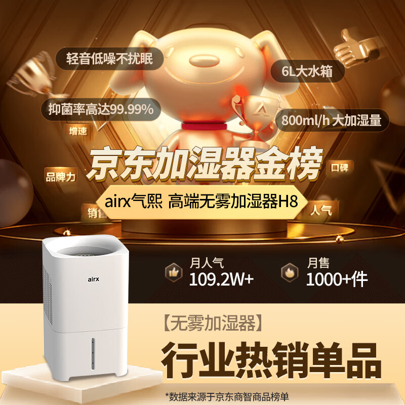 airx气熙 高端无雾加湿器 卧室家用办公室孕妇婴儿空气加湿 6L大容量 上加水 母婴推荐800ml/h加湿量H8价格:1399.00元!