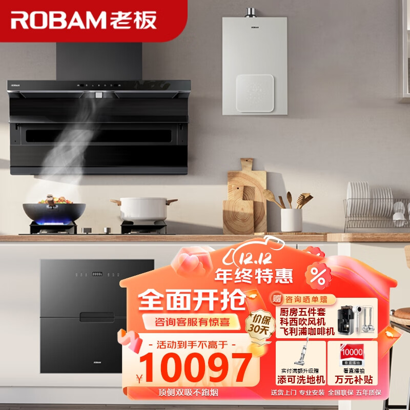 老板(Robam)油烟机家用顶侧双吸抽油烟机大吸力25风量油烟机厨房多件套27A13-D1+57B6D+XB710A+HD660A-16价格:10097.00元!