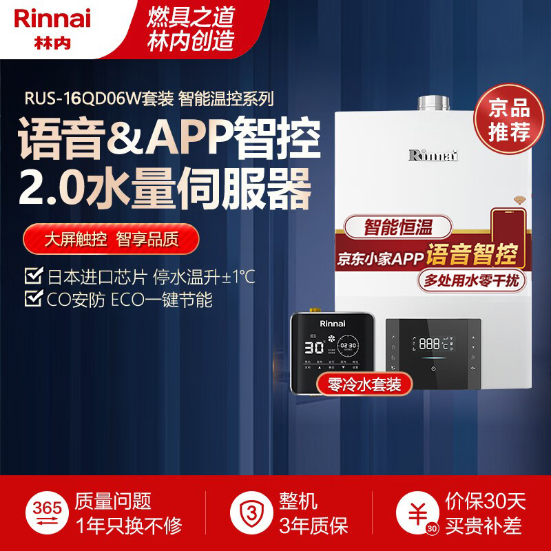 林内(Rinnai)【热小智】16升燃气热水器水伺服京东小家智能生态零冷水套装语音APP智控16QD06W+SG(JSQ31-D06W)价格:5598.00元!