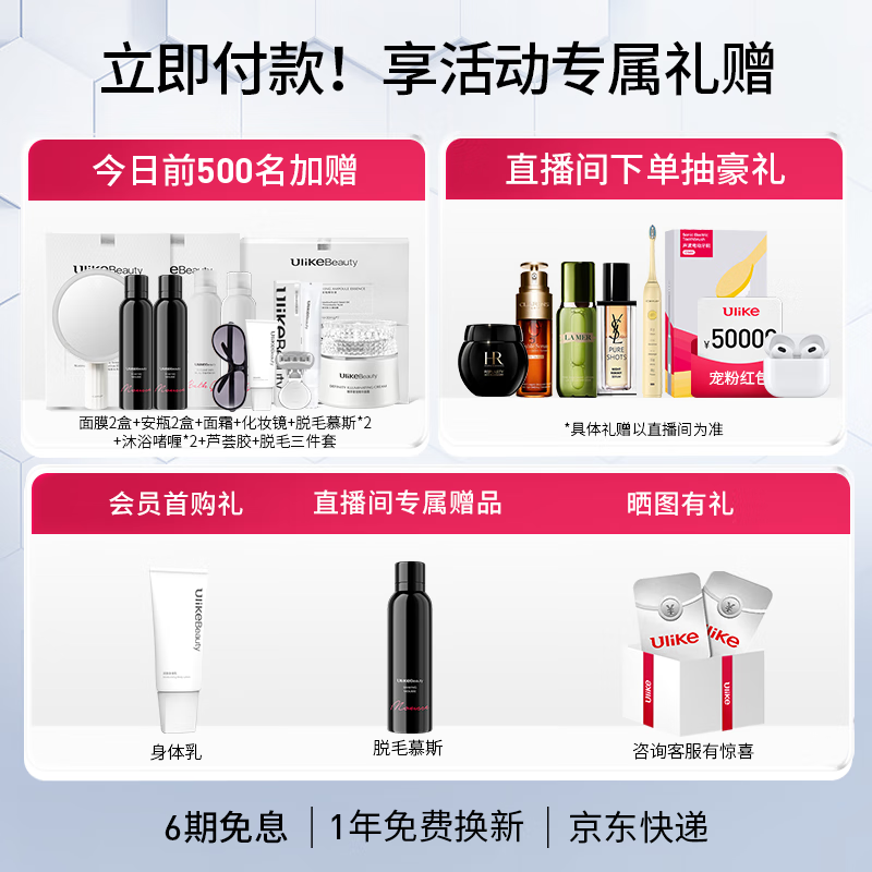 Ulike蓝宝石冰点脱毛仪激光剃毛器 白皇后大排灯美容仪 Air3水晶紫+白皇后面罩套装 送女友圣诞礼物价格:4998.00元!