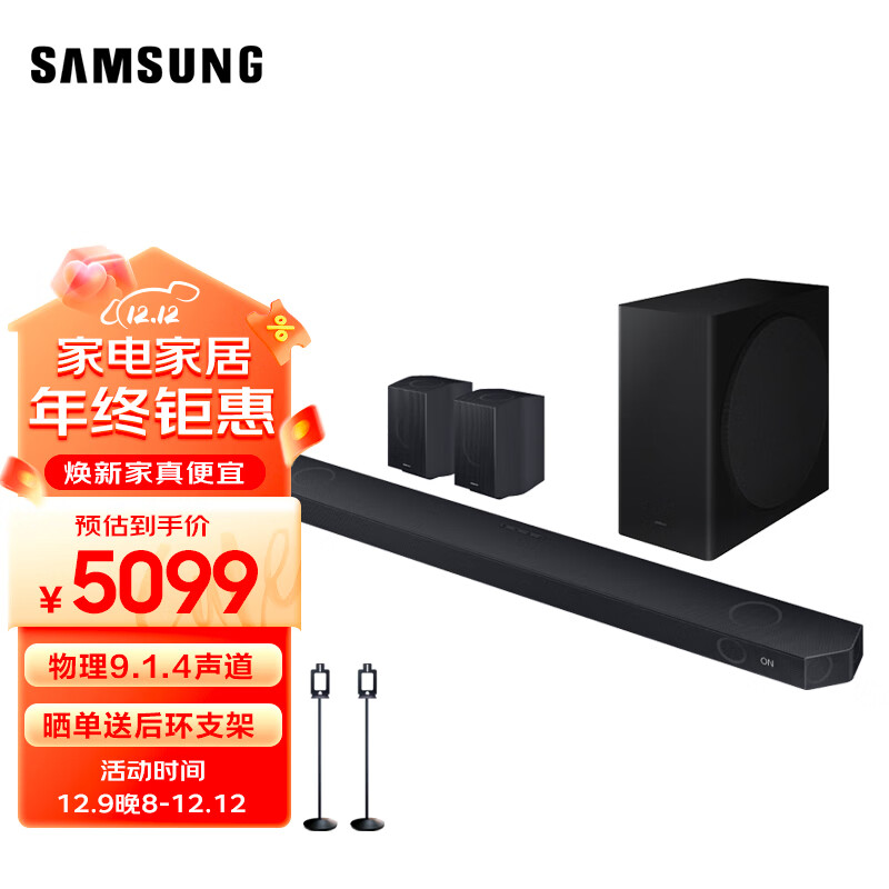 三星(SAMSUNG)Q930C 9.1.4杜比全景声 DTS-X回音壁 soundbar 家庭影院 天空声道 无线环绕 电视音响价格:4999.00元!