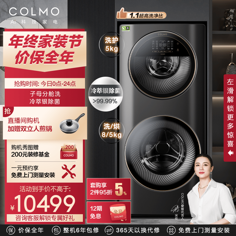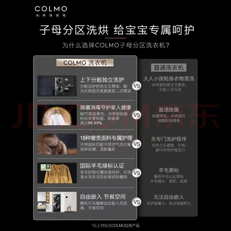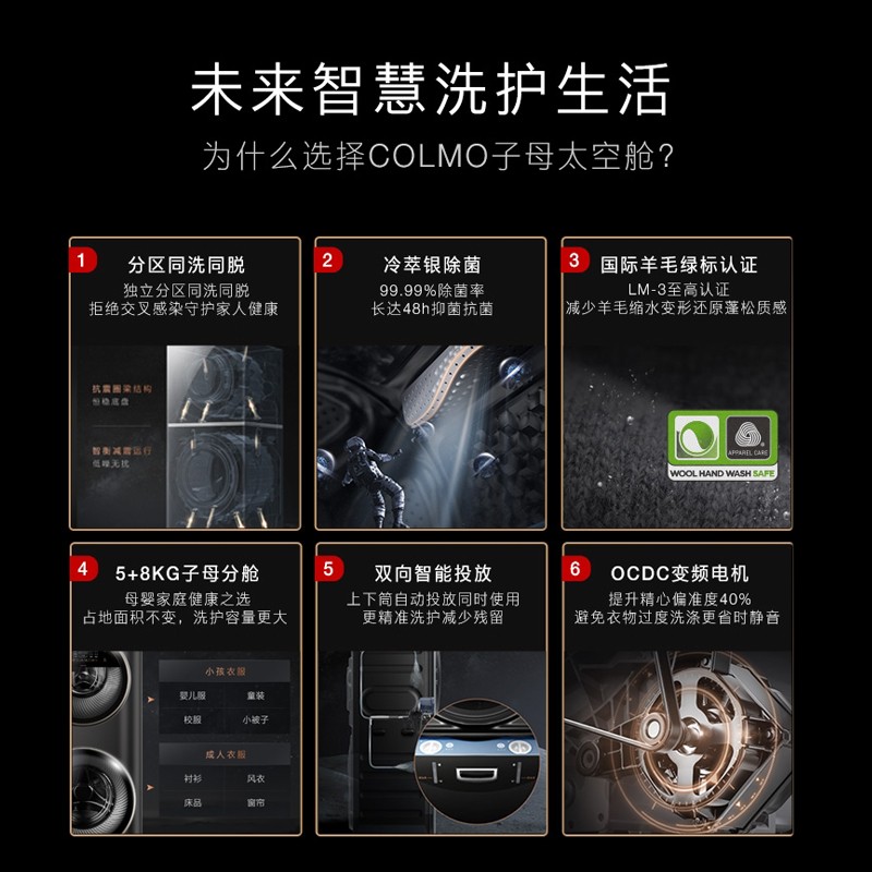 COLMO 子母舱母婴分区洗衣机滚筒全自动洗烘一体机 智能投放 同步洗脱 国际羊毛绿标 合墅太空舱CLDG13E价格:10499.00元!