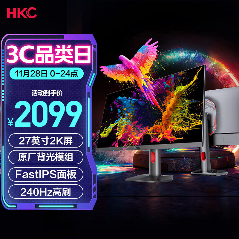 HKC 27Ӣ??2K 240Hz FastIPS????Һ?? HDR600??????ɫ?? 10Bit??Ļ 1ms??????ת?羺??Ϸ??ʾ?? ????MG27QK?۸???2699.00Ԫ??