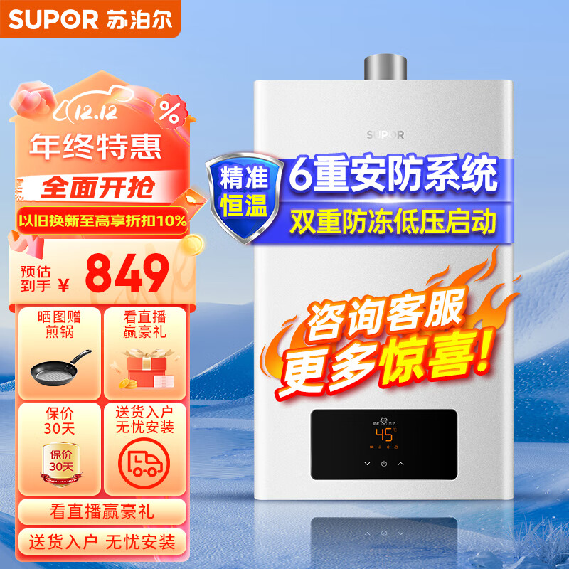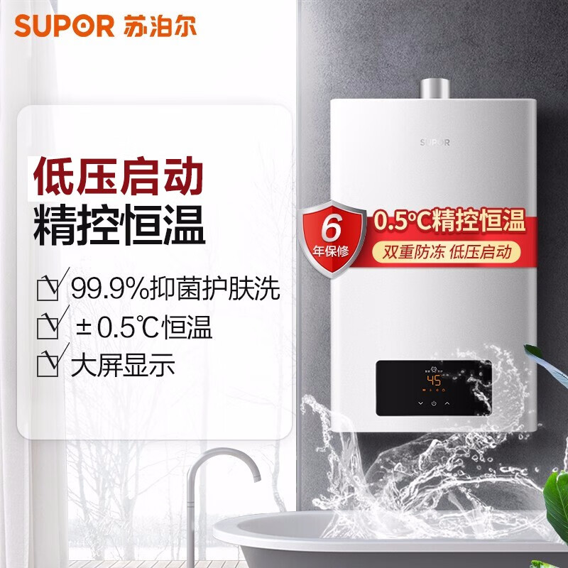 苏泊尔(SUPOR)燃气热水器12升智能精控恒温 家用天然气热水器断电记忆防风抗冻自检12R-DK20价格:849.00元!