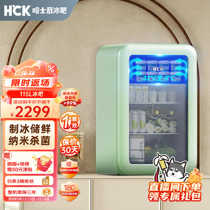 哈士奇客厅复古冰箱冷冻茶叶酒饮冷藏保鲜冰吧租房家用小型饮料柜智能恒温冰柜115升SC-130RD-S薄荷绿价格:2299.00元!
