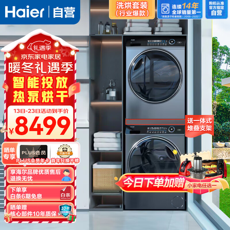 海尔(Haier)纤美176+176洗烘组合套装全自动10KG高端双擎热泵4层超滤智投直驱洗衣机【纤美双擎热泵】价格:8299.00元!