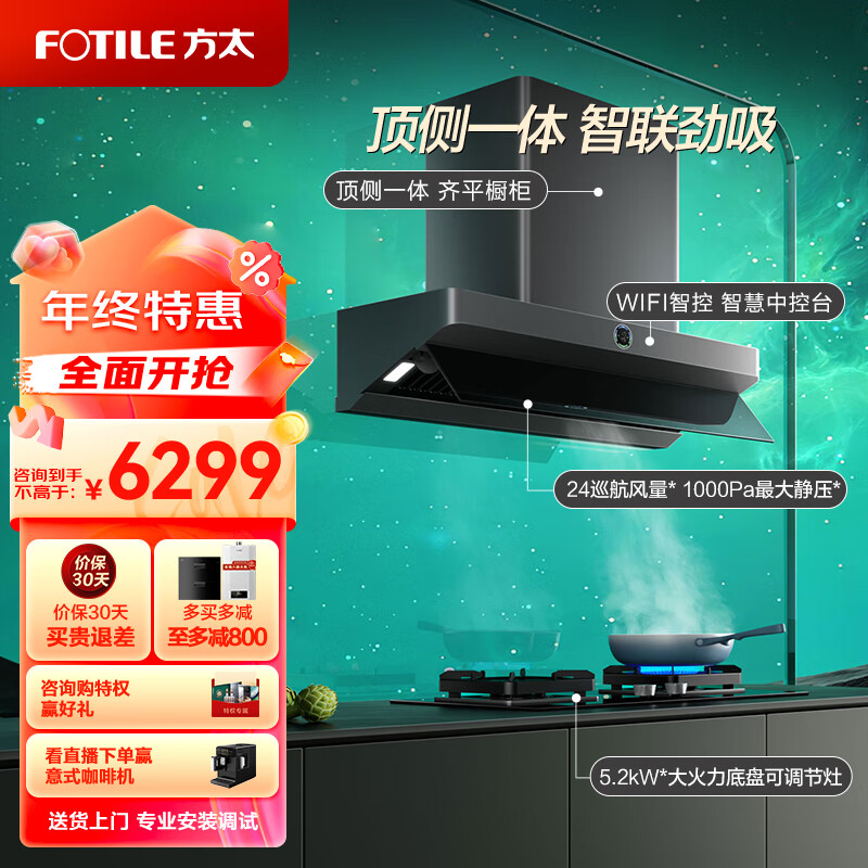 方太(FOTILE)抽吸油烟机灶具套装 顶侧吸一体欧式 变频烟灶24巡航风量5.2kW燃气灶套餐01-F2.i+02-TH27B天然气价格:6299.00元!