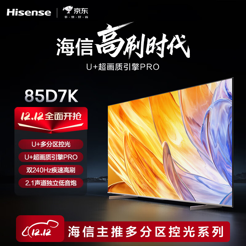海信电视 85英寸 85D7K U+多分区控光 240Hz刷新 2.1声道震撼低音 杜比音画 液晶智能平板电视机价格:14999.00元!