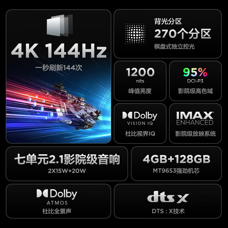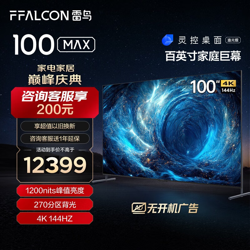 FFALCON雷鸟 游戏电视100英寸100MAX 144Hz高刷 4+128G 智慧屏 4K超高清液晶会议电视机100S545C Max[黑]价格:12399.00元!