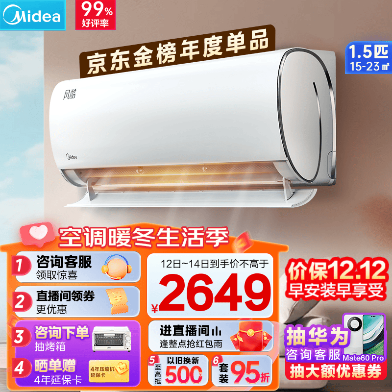 美的(Midea)空调 风酷 新一级能效 变频冷暖 自清洁 壁挂式空调挂机 京东小家智能家电 1.5匹KFR-35GW/N8XHC1价格:2649.00元!