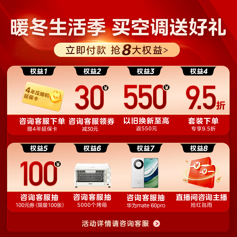 4、一次买了6台,每个房间都装上了,以后再也不怕热不怕冷咯,美的空调一如既往的又快又好,不错不错????