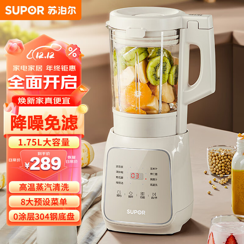 苏泊尔(SUPOR)破壁机 家用1.75L大容量多功能加热破壁豆浆机早餐机榨汁机辅食机 SP615价格:329.00元!