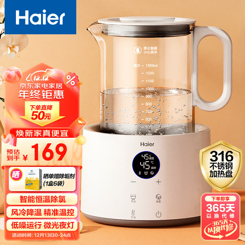 海尔(Haier) 恒温水壶1.35L 多功能电水壶煮茶烧水壶热水壶冲泡奶粉婴儿恒温水壶 HBM-H205价格:159.00元!