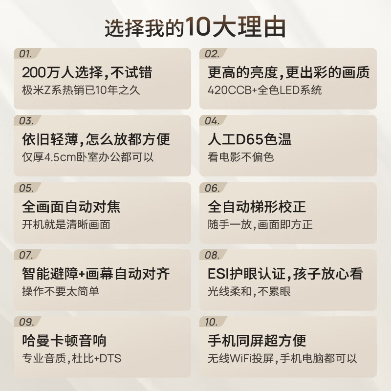极米Z6X(第四代)配置参数: