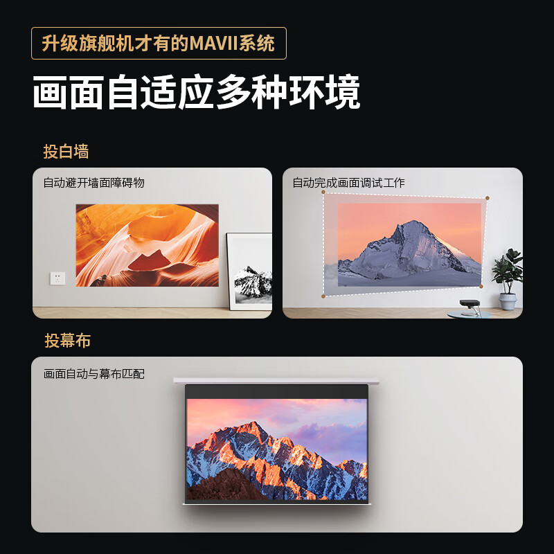 2、画质真的很好!一开始开着灯打开就很惊艳关了灯之后更是直呼哇塞!!音质大家可以看看视频就可以知道声音很清晰很明亮。还自带了一个自动校准功能真的惊到我了!超级厉害不用拿着对着屏幕正中间很好操作连好网就和电视一样的了快冲啊大家