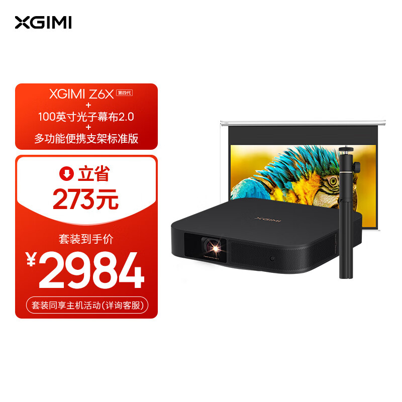 极米Z6X 第四代 套装6 投影仪家用+多功能便携支架标准版+100英寸光子幕布2.0价格:2984.00元!